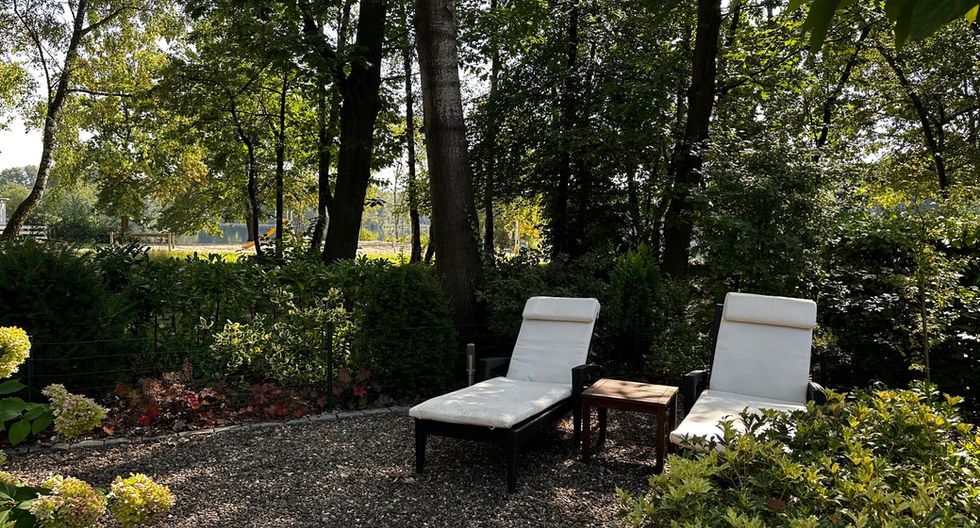 De ruime tuin biedt een prachtig uitzicht op het meer. Een comfortabele tuinset nodigt uit tot luieren en lezen. De robuuste eettafel wacht op zomerse etentjes en gezelligheid. En een prima Weber-barbecue staat klaar in de tuin.